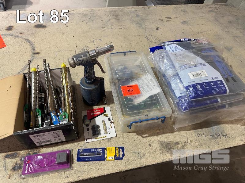 AIR RIVIT GUN, MASONARY DRILLS, TEK BITS, REPIRATORY MASK & OVERALLS