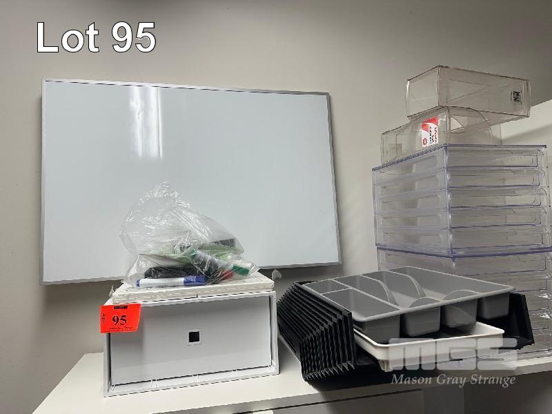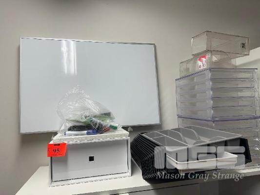 SMALL WHITEBOARD, MARKERS, OFFICE TRAYS, FILE HOLDERS SUSPENSION FILES, FOLDERS, ETC.