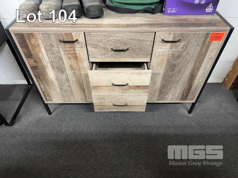 LOWLINE CABINET, 2 DOOR, 3 DRAWER LIMED OAK LAMINATE FEATURE