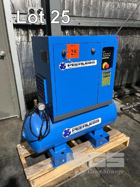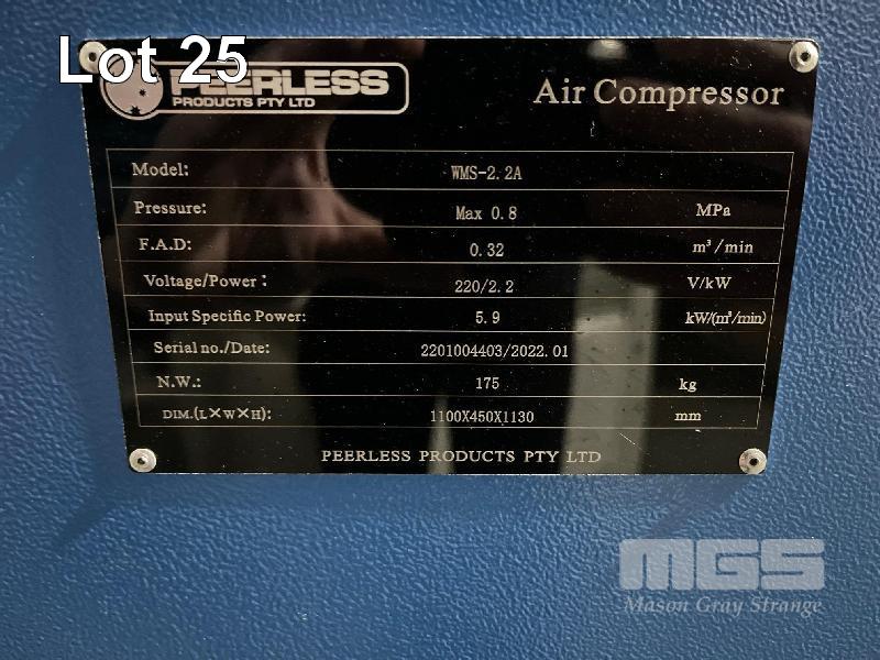 PEERLESS 240V 15amp AIRCOMPRESSOR MOD: WMS-2.2A, SCROLL TYPE, DOM: 2022, 2.2kw, 0.32M3 PER MIN, DIGITAL DISPLAY, NEXT SERVICE DUE AT 500hrs
