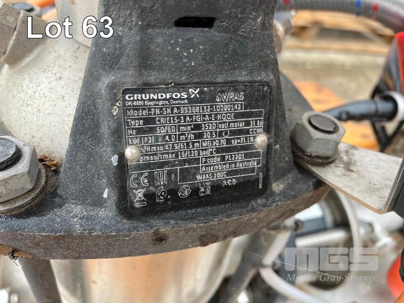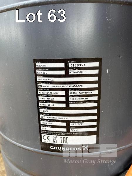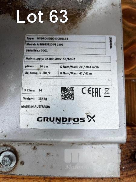 GRUNDFOS PUMP, HYDRO-SOLO E CRIE 15-3, 3 PHASE, STAINLESS STEEL BASE, 80L PRESSURE TANK, TRANSDUCER, VSD, ISOLATOR SWITCH, NON-RETURN VALVE