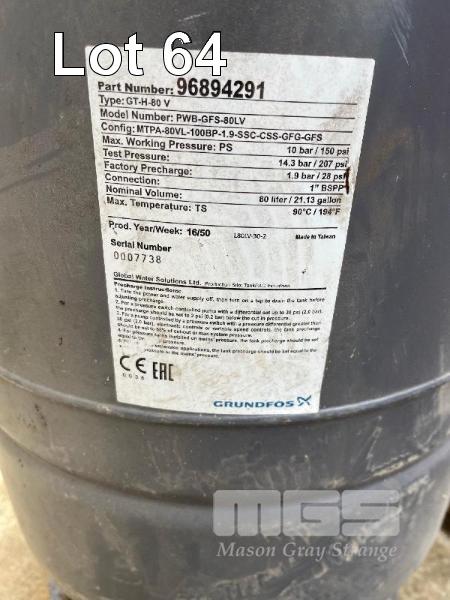 GRUNDFOS PUMP, HYDRO-SOLO E CRIE 15-3, 3 PHASE, STAINLESS STEEL BASE, 80L PRESSURE TANK, TRANSDUCER, VSD, ISOLATOR SWITCH, NON-RETURN VALVE