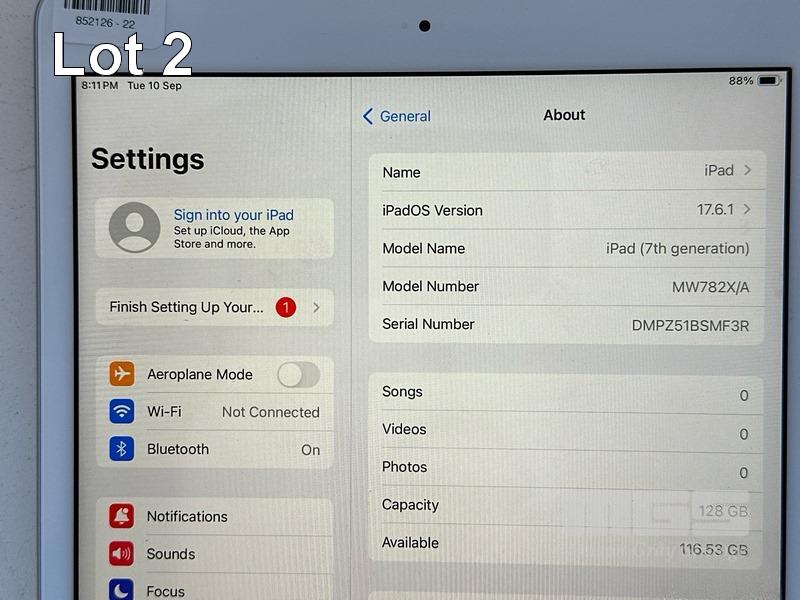 APPLE iPAD 7TH GEN, 128GB, Wi-Fi, SILVER, MODEL MW782X/A, A2197 WITH COVER, CABLE & CHARGER S/N:DMPZ51BSMF3R