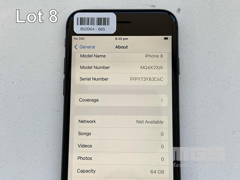 APPLE iPHONE 8, 64GB, SPACE GREY, MODEL MQ6K2X/A, BATTERY HEALTH 98% (NO CABLE, NO CHARGER) S/N:FFPYT3Y8JC6C
