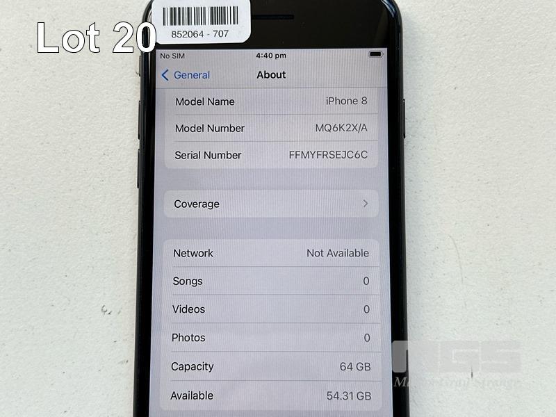 APPLE iPHONE 8, 64GB, SPACE GREY, MODEL MQ6K2X/A, BATTERY HEALTH 95% (NO CABLE, NO CHARGER) S/N:FFMYFRSEJC6C