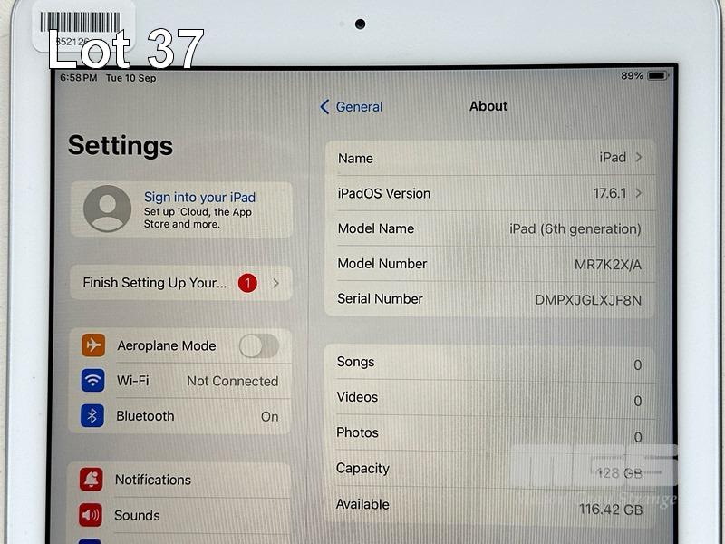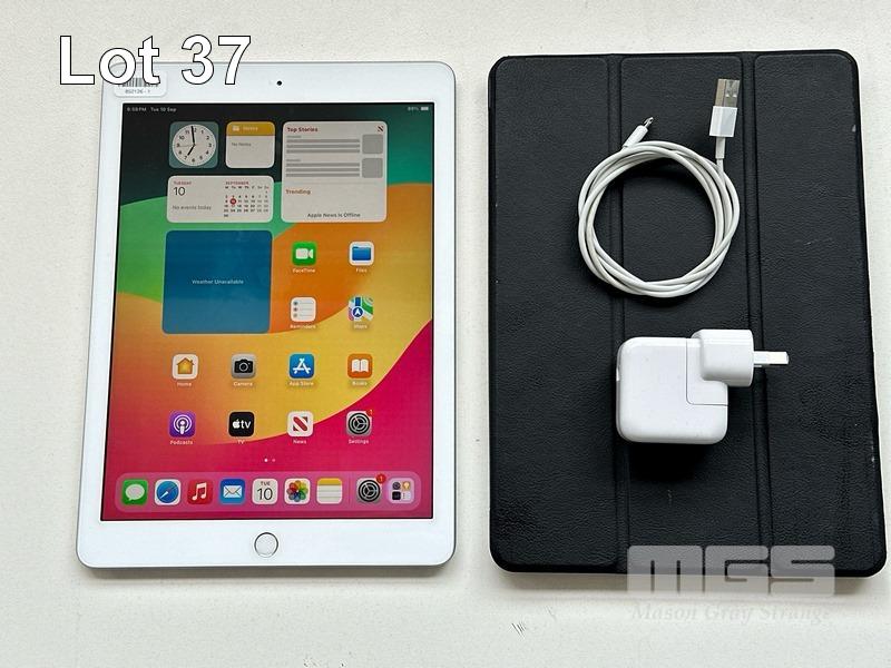 APPLE iPAD 6TH GEN, 128GB, Wi-Fi, SILVER, MODEL MR7K2X/A, A1893 WITH COVER, CABLE & CHARGER S/N:DMPXJGLXJF8N