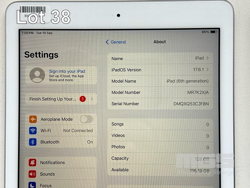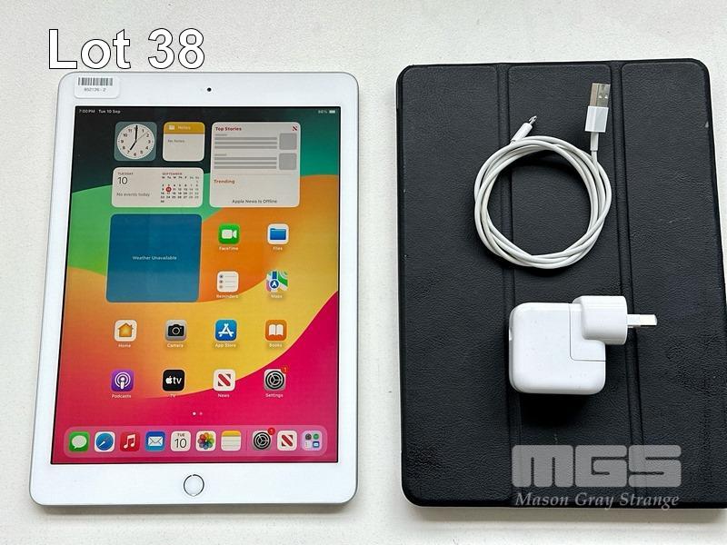 APPLE iPAD 6TH GEN, 128GB, Wi-Fi, SILVER, MODEL MR7K2X/A, A1893 WITH COVER, CABLE & CHARGER S/N:DMQXQ53CJF8N