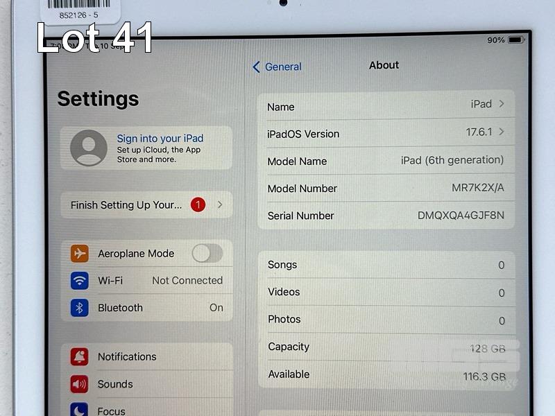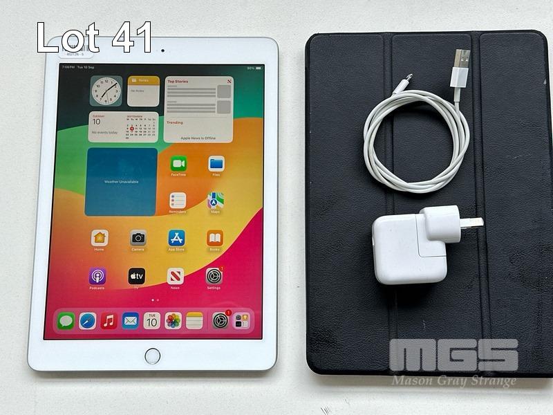 APPLE iPAD 6TH GEN, 128GB, Wi-Fi, SILVER, MODEL MR7K2X/A, A1893 WITH COVER, CABLE & CHARGER S/N:DMQXQA4GJF8N