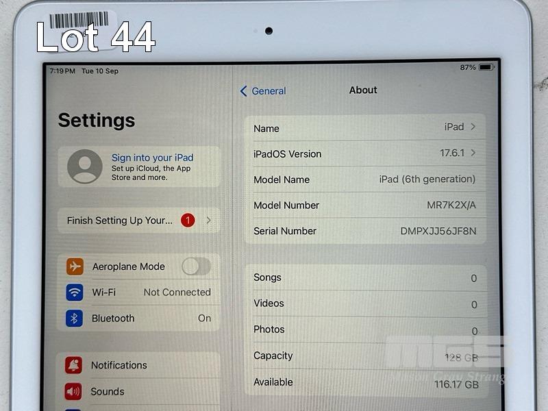 APPLE iPAD 6TH GEN, 128GB, Wi-Fi, SILVER, MODEL MR7K2X/A, A1893 WITH COVER, CABLE & CHARGER S/N:DMPXJJ56JF8N