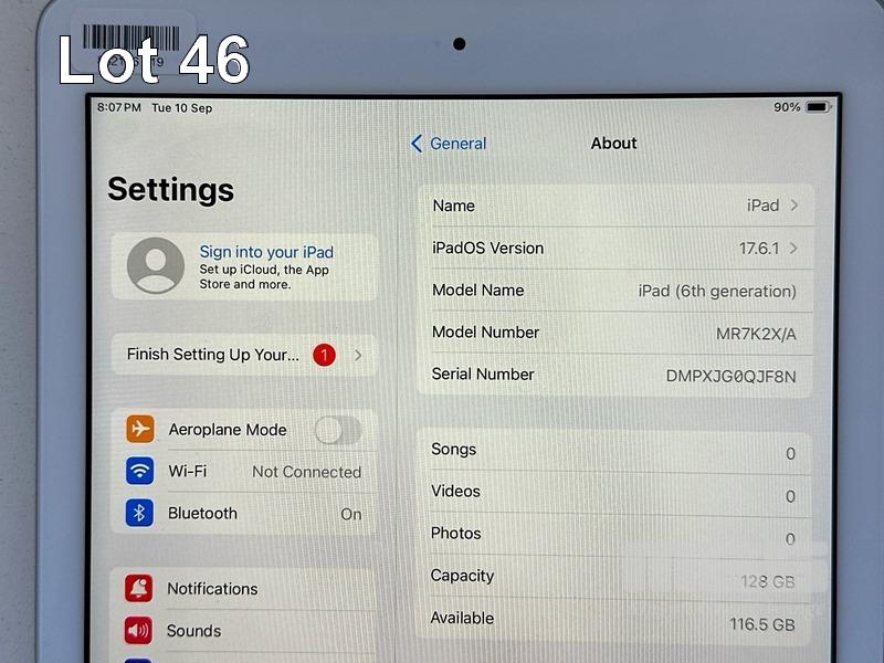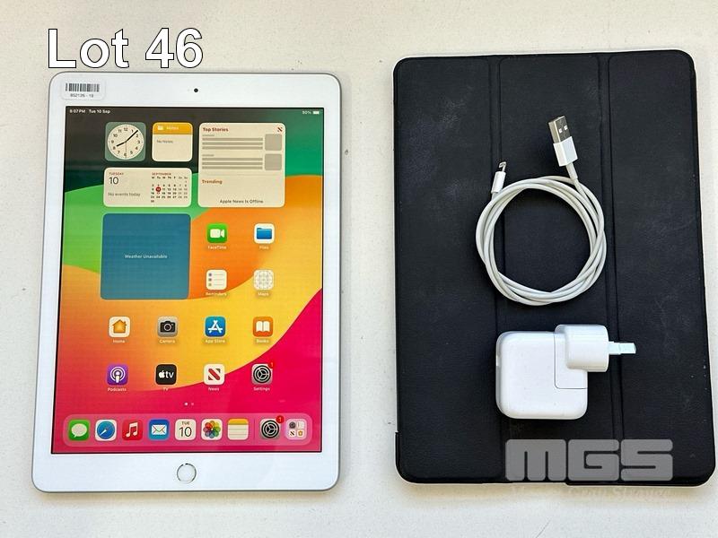 APPLE iPAD 6TH GEN, 128GB, Wi-Fi, SILVER, MODEL MR7K2X/A, A1893 WITH COVER, CABLE & CHARGER S/N:DMPXJG0QJF8N