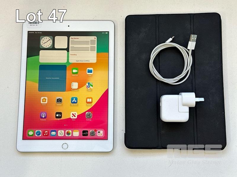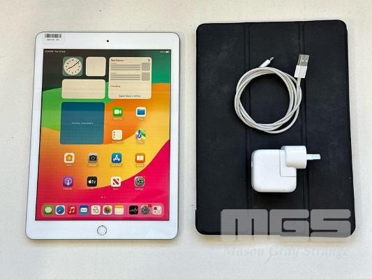 APPLE iPAD 6TH GEN, 128GB, Wi-Fi, SILVER, MODEL MR7K2X/A, A1893 WITH COVER, CABLE & CHARGER S/N:DMPXJFLQJF8N
