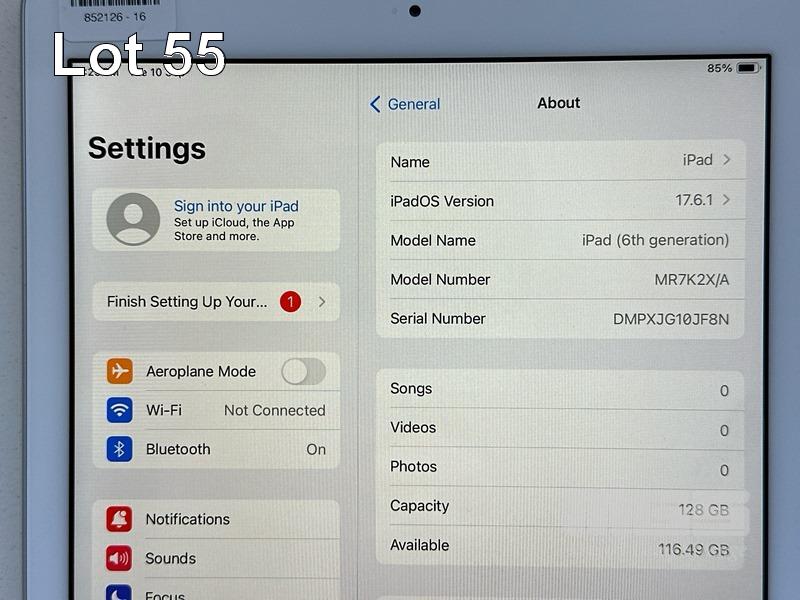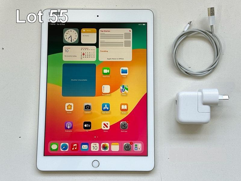 APPLE iPAD 6TH GEN, 128GB, Wi-Fi, SILVER, MODEL MR7K2X/A, A1893 WITH CABLE & CHARGER S/N:DMPXJG10JF8N