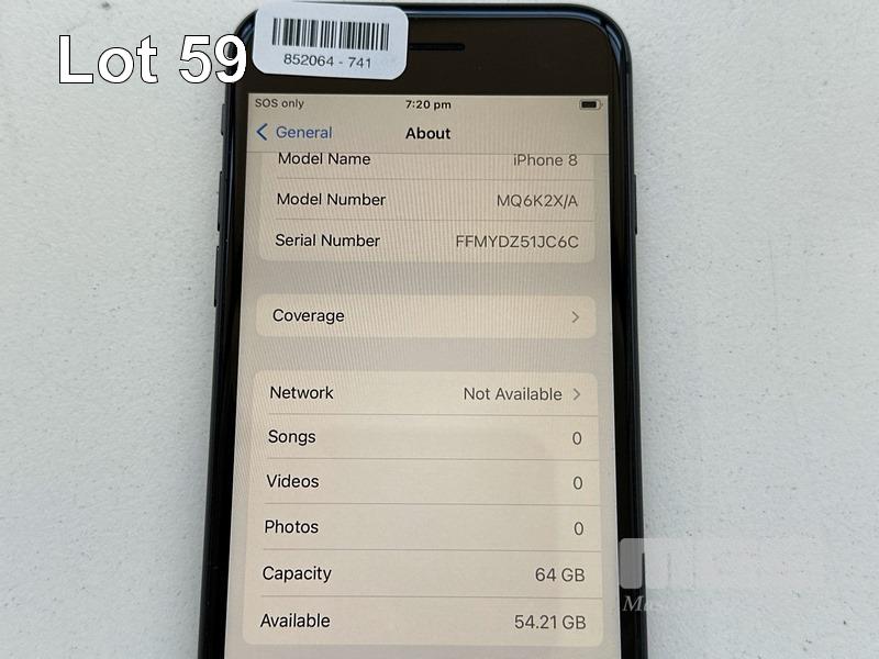 APPLE iPHONE 8, 64GB, SPACE GREY, MODEL MQ6K2X/A, BATTERY HEALTH 92% (NO CABLE, NO CHARGER) S/N:FFMYDZ51JC6C