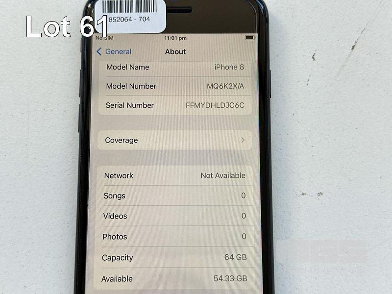 APPLE iPHONE 8, 64GB, SPACE GREY, MODEL MQ6K2X/A, BATTERY HEALTH 92% (NO CABLE, NO CHARGER) S/N:FFMYDHLDJC6C