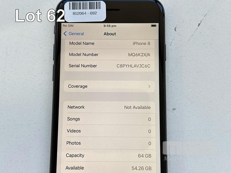 APPLE iPHONE 8, 64GB, SPACE GREY, MODEL MQ6K2X/A, BATTERY HEALTH 92% (NO CABLE, NO CHARGER) S/N:C8PYHLAVJC6C