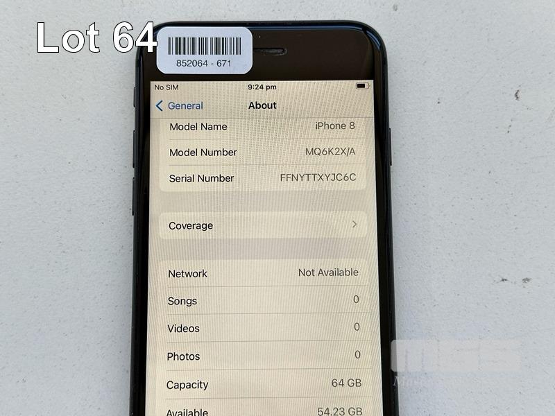 APPLE iPHONE 8, 64GB, SPACE GREY, MODEL MQ6K2X/A, BATTERY HEALTH 92% (NO CABLE, NO CHARGER) S/N:FFNYTTXYJC6C