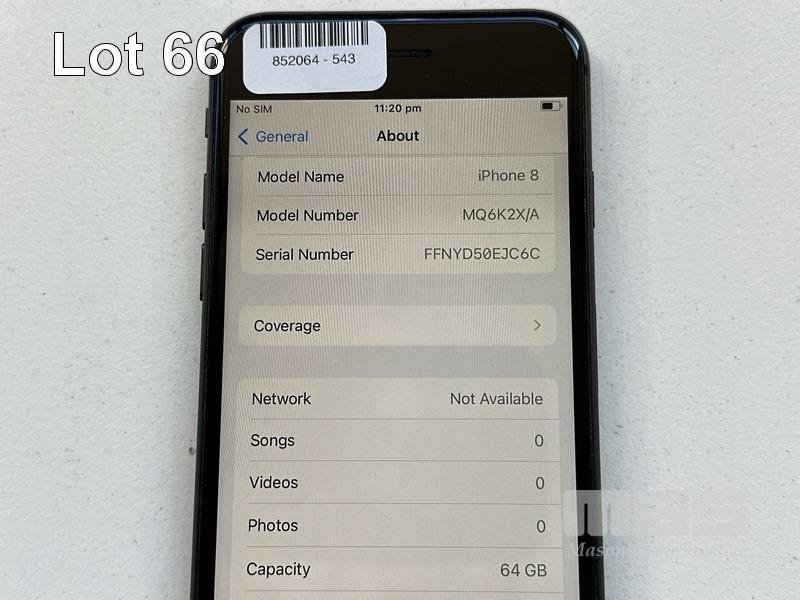 APPLE iPHONE 8, 64GB, SPACE GREY, MODEL MQ6K2X/A, BATTERY HEALTH 91% (NO CABLE, NO CHARGER) S/N:FFNYD50EJC6C