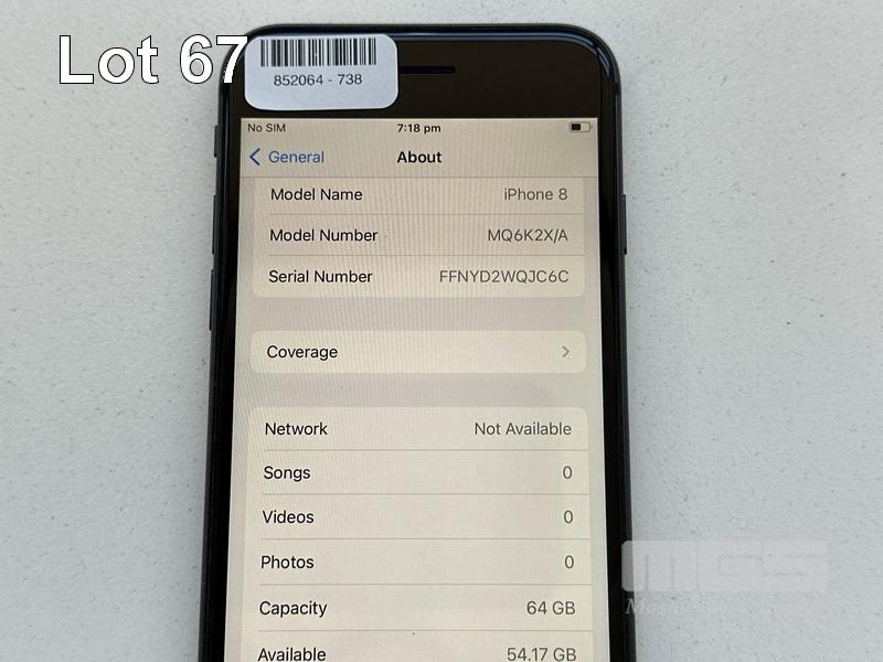 APPLE iPHONE 8, 64GB, SPACE GREY, MODEL MQ6K2X/A, BATTERY HEALTH 91% (NO CABLE, NO CHARGER) S/N:FFNYD2WQJC6C