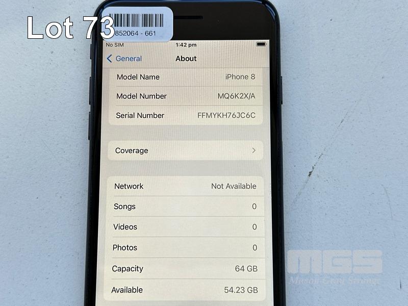 APPLE iPHONE 8, 64GB, SPACE GREY, MODEL MQ6K2X/A, BATTERY HEALTH 90% (NO CABLE, NO CHARGER) S/N:FFMYKH76JC6C