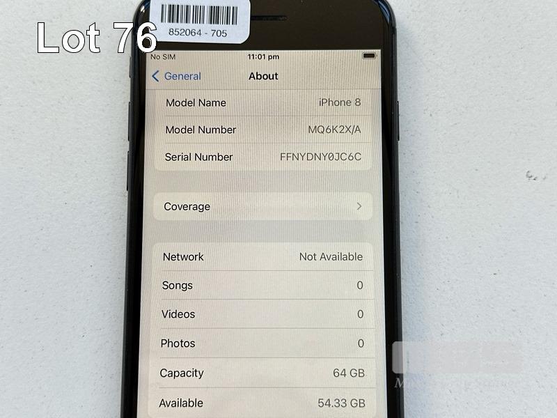 APPLE iPHONE 8, 64GB, SPACE GREY, MODEL MQ6K2X/A, BATTERY HEALTH 89% (NO CABLE, NO CHARGER) S/N:FFNYDNY0JC6C
