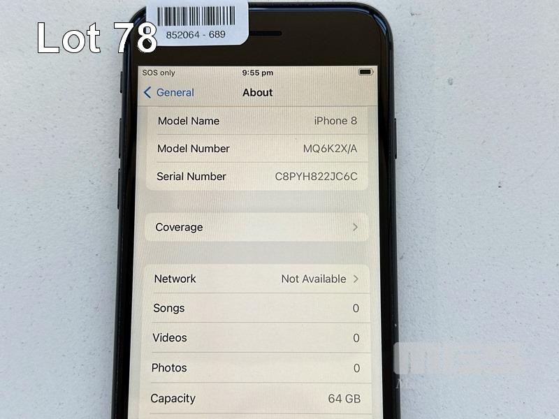 APPLE iPHONE 8, 64GB, SPACE GREY, MODEL MQ6K2X/A, BATTERY HEALTH 89% (NO CABLE, NO CHARGER) S/N:C8PYH822JC6C