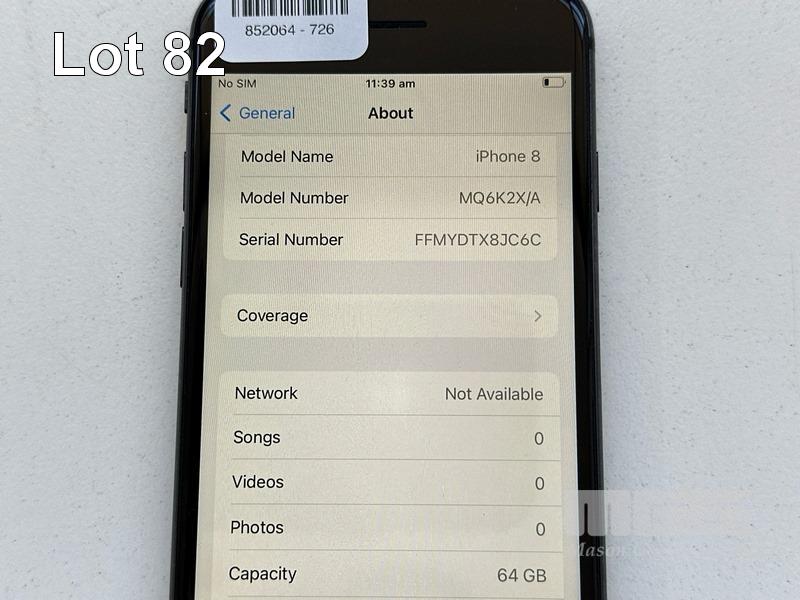 APPLE iPHONE 8, 64GB, SPACE GREY, MODEL MQ6K2X/A, BATTERY HEALTH 88% (NO CABLE, NO CHARGER) S/N:FFMYDTX8JC6C