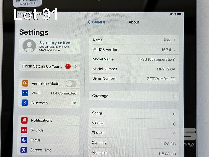 APPLE iPAD 5TH GEN, 128GB, Wi-Fi, SPACE GREY, MODEL MP2H2X/A, A1822 (NO CABLE, NO CHARGER) S/N:GCTV61H0HLFD