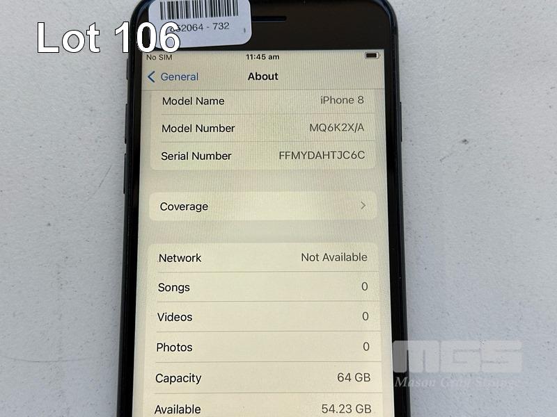 APPLE iPHONE 8, 64GB, SPACE GREY, MODEL MQ6K2X/A, BATTERY HEALTH 87% (NO CABLE, NO CHARGER) S/N:FFMYDAHTJC6C