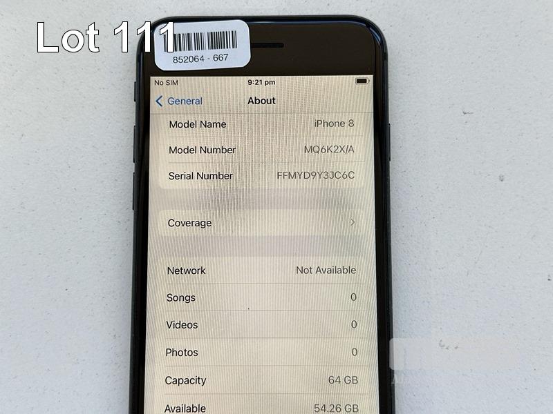 APPLE iPHONE 8, 64GB, SPACE GREY, MODEL MQ6K2X/A, BATTERY HEALTH 87% (NO CABLE, NO CHARGER) S/N:FFMYD9Y3JC6C