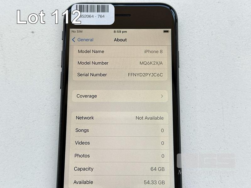 APPLE iPHONE 8, 64GB, SPACE GREY, MODEL MQ6K2X/A, BATTERY HEALTH 86% (NO CABLE, NO CHARGER) S/N:FFNYD2PYJC6C