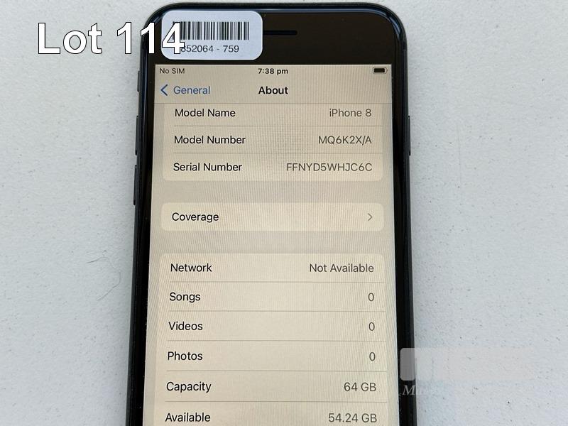 APPLE iPHONE 8, 64GB, SPACE GREY, MODEL MQ6K2X/A, BATTERY HEALTH 86% (NO CABLE, NO CHARGER) S/N:FFNYD5WHJC6C