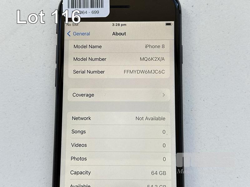 APPLE iPHONE 8, 64GB, SPACE GREY, MODEL MQ6K2X/A, BATTERY HEALTH 86% (NO CABLE, NO CHARGER) S/N:FFMYDW6MJC6C