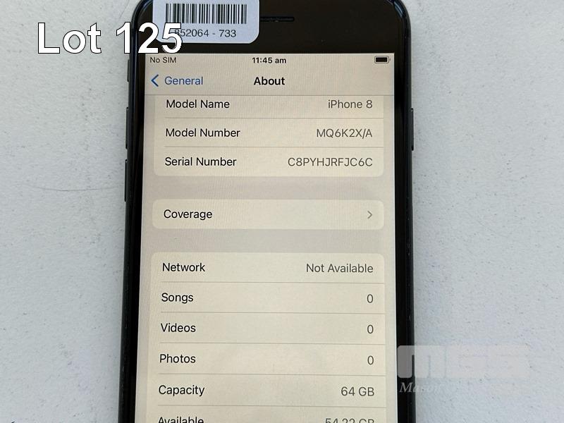 APPLE iPHONE 8, 64GB, SPACE GREY, MODEL MQ6K2X/A, BATTERY HEALTH 85% (NO CABLE, NO CHARGER) S/N:C8PYHJRFJC6C