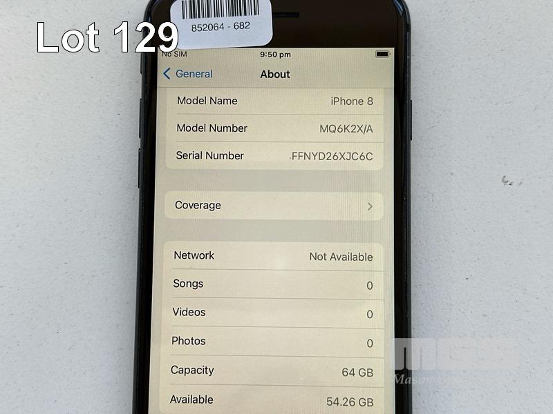 APPLE iPHONE 8, 64GB, SPACE GREY, MODEL MQ6K2X/A, BATTERY HEALTH 85% (NO CABLE, NO CHARGER) S/N:FFNYD26XJC6C