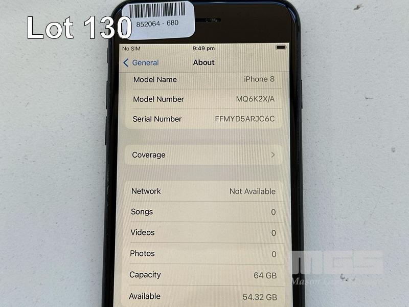 APPLE iPHONE 8, 64GB, SPACE GREY, MODEL MQ6K2X/A, BATTERY HEALTH 85% (NO CABLE, NO CHARGER) S/N:FFMYD5ARJC6C