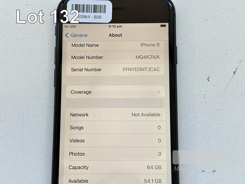 APPLE iPHONE 8, 64GB, SPACE GREY, MODEL MQ6K2X/A, BATTERY HEALTH 85% (NO CABLE, NO CHARGER) S/N:FFNYD3NTJC6C