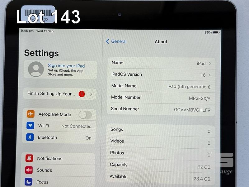 APPLE iPAD 5TH GEN, 32GB, Wi-Fi, SPACE GREY, MODEL MP2F2X/A, A1822 (NO CABLE, NO CHARGER) S/N:GCVVMBVGHLF9
