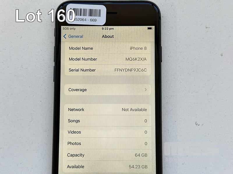 APPLE iPHONE 8, 64GB, SPACE GREY, MODEL MQ6K2X/A, BATTERY HEALTH 84% (NO CABLE, NO CHARGER) S/N:FFNYDNF9JC6C