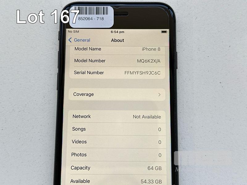 APPLE iPHONE 8, 64GB, SPACE GREY, MODEL MQ6K2X/A, BATTERY HEALTH 82% (NO CABLE, NO CHARGER) S/N:FFMYFSH9JC6C
