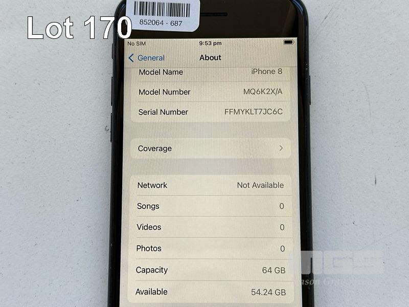APPLE iPHONE 8, 64GB, SPACE GREY, MODEL MQ6K2X/A, BATTERY HEALTH 81% (NO CABLE, NO CHARGER) S/N:FFMYKLT7JC6C