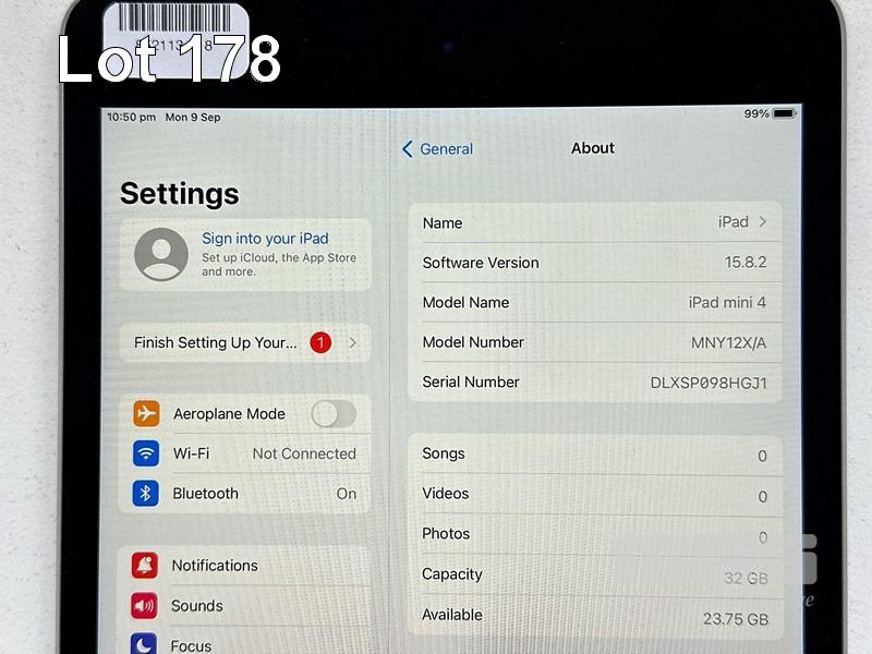 APPLE iPAD MINI 4TH GEN, 32GB, Wi-Fi, SPACE GREY, MODEL MNY12X/A, A1538 (NO CABLE, NO CHARGER) S/N:DLXSP098HGJ1