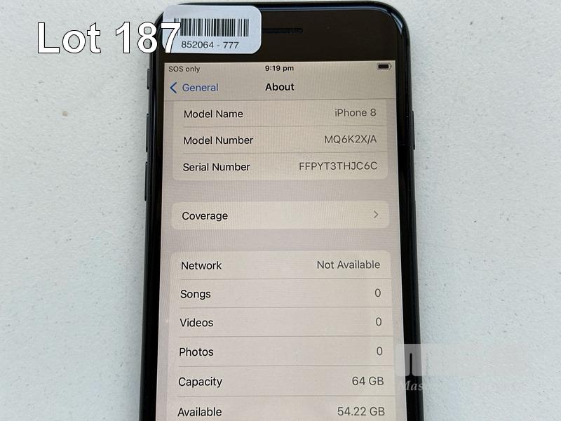 APPLE iPHONE 8, 64GB, SPACE GREY, MODEL MQ6K2X/A, BATTERY HEALTH 88% (NO CABLE, NO CHARGER) (NOTE: MINOR SCRATCHES ON SCREEN) S/N:FFPYT3THJC6C