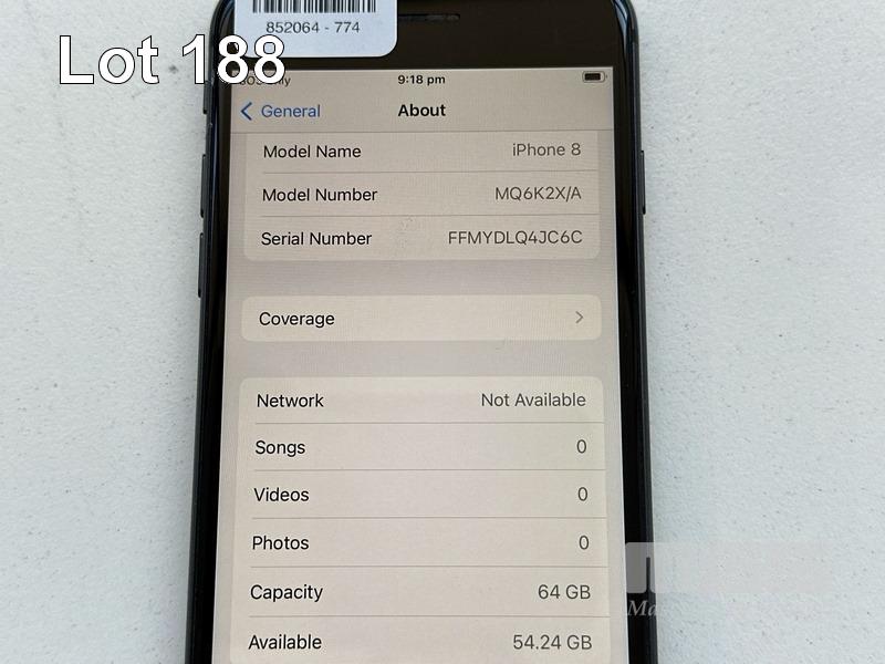 APPLE iPHONE 8, 64GB, SPACE GREY, MODEL MQ6K2X/A, BATTERY HEALTH 88% (NO CABLE, NO CHARGER) (NOTE: MINOR SCRATCHES ON SCREEN) S/N:FFMYDLQ4JC6C