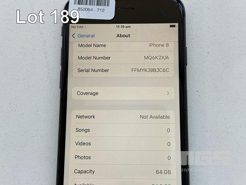 APPLE iPHONE 8, 64GB, SPACE GREY, MODEL MQ6K2X/A, BATTERY HEALTH 88% (NO CABLE, NO CHARGER) (NOTE: SCRATCH ON BACK) S/N:FFMYKJ0BJC6C