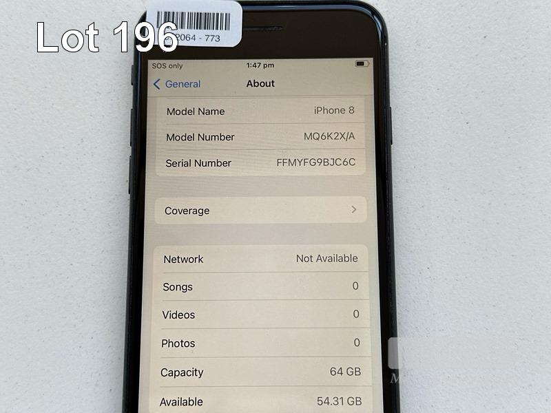 APPLE iPHONE 8, 64GB, SPACE GREY, MODEL MQ6K2X/A, BATTERY HEALTH 86% (NO CABLE, NO CHARGER) (NOTE: MINOR SCRATCHES ON SCREEN) S/N:FFMYFG9BJC6C