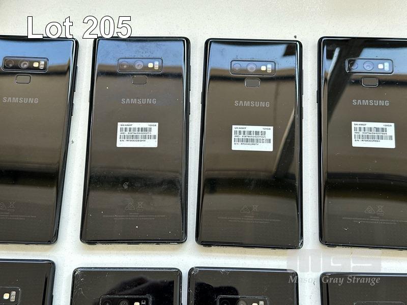 22 x SAMSUNG GALAXY NOTE9 SMARTPHONES, 128GB, BLACK, MODEL SM-N960F (NO USB-C CABLES, NO CHARGERS) (NOTE: ALL VARIOUS DAMAGE, FAULTS & LOCKED TO GOOGLE ACCOUNTS)