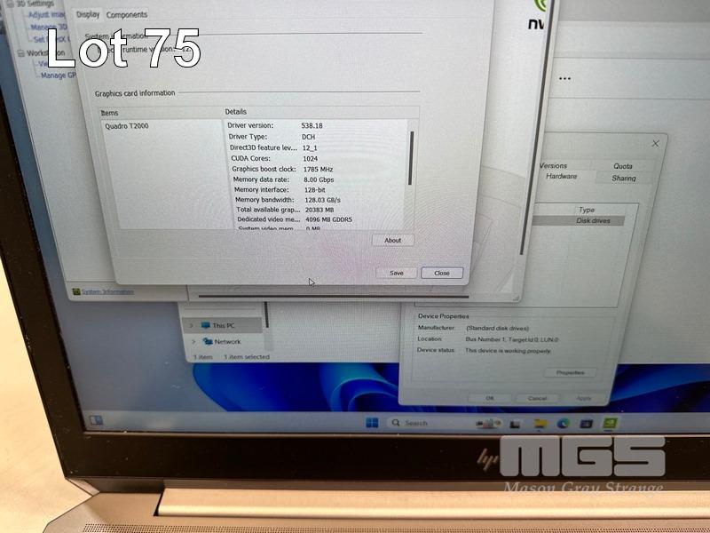 LAPTOP, HP ZBOOK 15 G6 MOBILE WORKSTATION, CORE i9 9880H (9TH GEN) @ 2.3GHz, 32GB DDR4 RAM, 256GB M.2 SSD, 15.6" WIDESCREEN (1920x1080), 4GB NVIDIA QUADRO T2000 VIDEO, Wi-Fi, BLUETOOTH, WINDOWS 11 PRO INSTALLED (NO POWER SUPPLY) (NOTE: SMALL DENT IN CASING) S/N:5CD9478HH0
