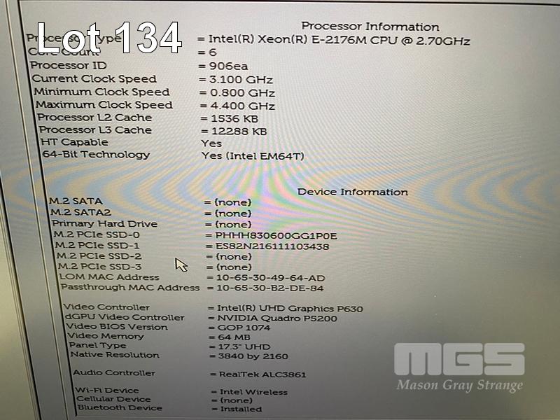 LAPTOP, DELL PRECISION 7730, XEON E-2176M @ 2.7GHz, 64GB DDR4 RAM, 1TB NVMe M.2 SSD, 512GB NVMe M.2 SSD, 17.3" UHD WIDESCREEN (3840x2160), 16GB NVIDIA QUADRO P5200 VIDEO, INTEL UHD GRAPHICS 630, Wi-Fi, BLUETOOTH, WINDOWS 11 PRO INSTALLED & POWER SUPPLY
