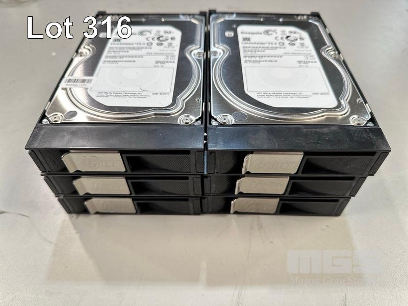 6 x SEAGATE 4TB SATA HARD DRIVES, ST4000NM0033, 3.5" WITH CADDIES