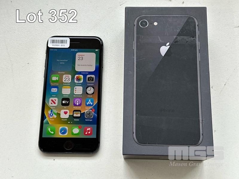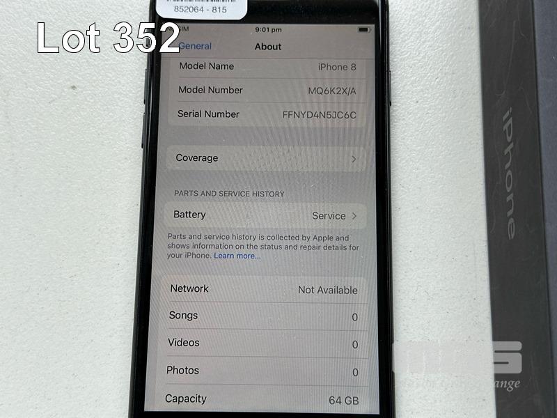 APPLE iPHONE 8, 64GB, SPACE GREY, MODEL MQ6K2X/A, BATTERY HEALTH 77% (NO CABLE, NO CHARGER) (NOTE: BATTERY SERVICE MESSAGE & SCRATCHES ON SCREEN) S/N:FFNYD4N5JC6C